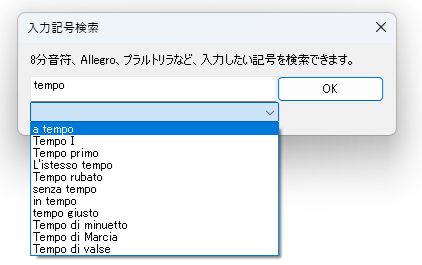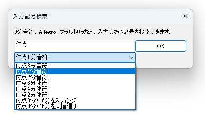 先日、リリースされたスコアメーカーZEROの最新版では、入力したい記号が検索できるようになりましたface22