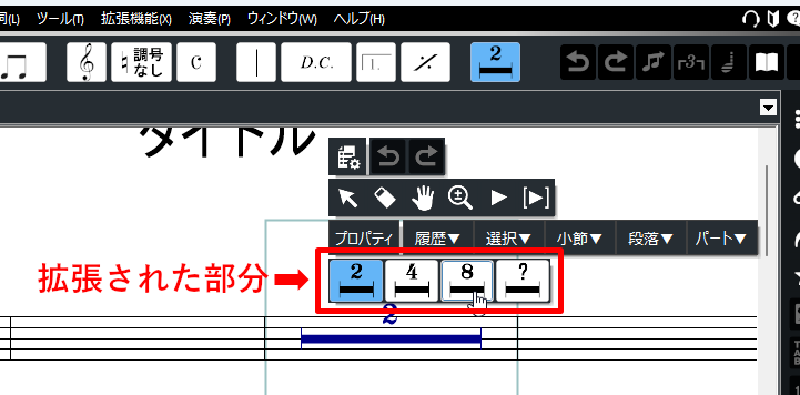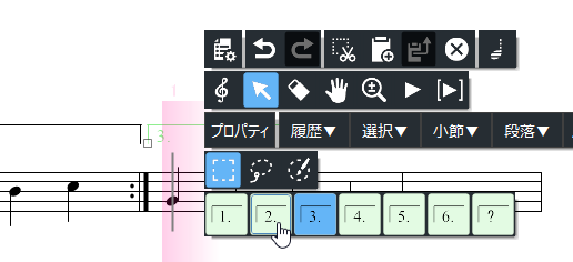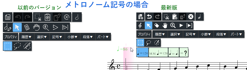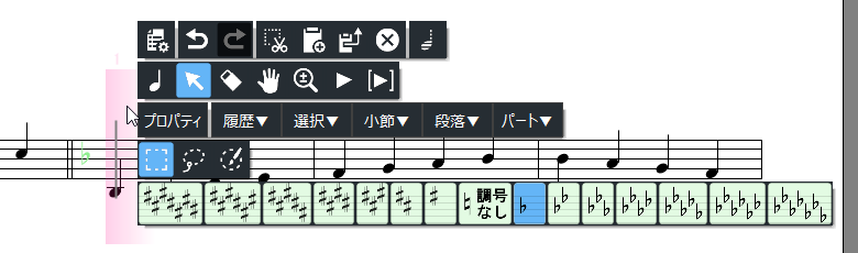 これらの候補をクリックすれば、楽譜上の記号や、入力時のカーソルを変更できます