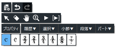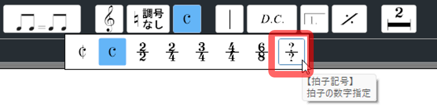 コントロールバーから「拍子記号」を選び、拍子記号一覧の[?/?]の項目を選択します。