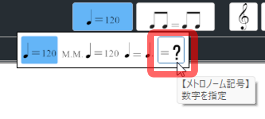 コントロールバーで「メトロノーム記号」を選び、[=?]の項目を選択します。